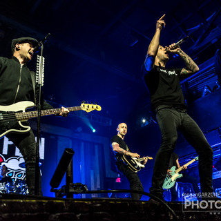 The energy in the room was overflowing as everyone anxiously awaited Simple Plan. Finally the first notes of “I'd Do Anything” rang out and the crowd went absolutely wild. Besides a backdrop and some ego boxes, there wasn't much to the stage set up, but honestly, the bare stage just gave the guys more room to jump around and rock out. As the first chorus hit, you could barely hear singer Pierre Bouvier over the fans screaming it at the top of their lungs. These were clearly old school fans that had been there since the beginning. Our generation has grown with Simple Plan from “I'm Just a Kid” to “Welcome to My Life” and regardless if you've stayed on top of their latest music, the entire room was reverted back to their early teens with their raging-emo-emotions.