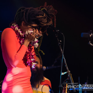 Midway through the concert something happened you will only see in Hawaii. The performer got lei-ed onstage. A number of flower leis were passed to the front and given to June. The gesture totally surprised her she was gushing with thanks. June buried her head in the flowers and told the crowd how much she loved plants and how the plants and flowers of the islands were so overwhelming. Valerie June then sauntered to center stage, placed the leis on the microphone and continued with favorites “With You”, Astral Plane”, and “Can’t Be Told” to end the set .