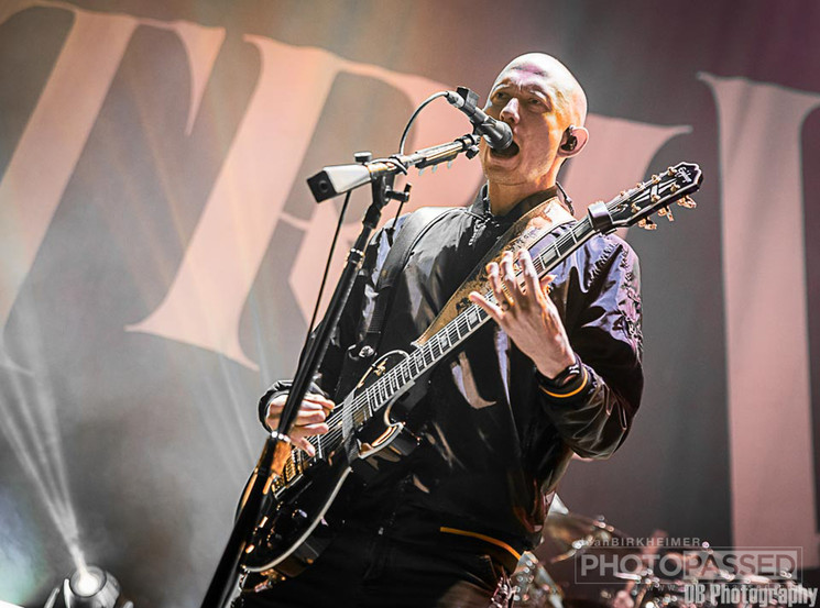 The night began just as expected with some ground-smashing, rapid-fire guitar work and some distinctive metal-screaming. The Swedish Metal Masters, In Flames set the bar high as they reeled in every fan and maintained a stranglehold on them until the end of their very tight set. In between photographing the band, I would turn around and be confronted with an ocean of bobbing hair and metal horns thrusting skyward. The set was only eight songs long and their time on stage was short, but they made the most of it and did so much more than what is asked of an opening act.
